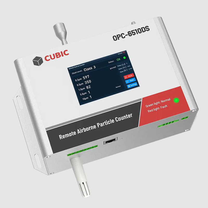 Pour atteindreEnvironnement Processus de surveillance, Cubic a conçuSérie de OPC-6303 de compteur de particules 2.83LPMEtCompteur de particules 28.3LPM Série OPC-6510, Basé sur sa technologie de diffusion de la lumière centrale pour surveiller les niveaux de particules, et également utiliséMontage muralCO2SEnsorEtCOntroller AM6108B à surveillerTempEratureEt humidité Dans les salles blanches de fabrication FPD.